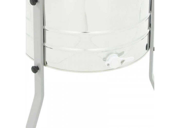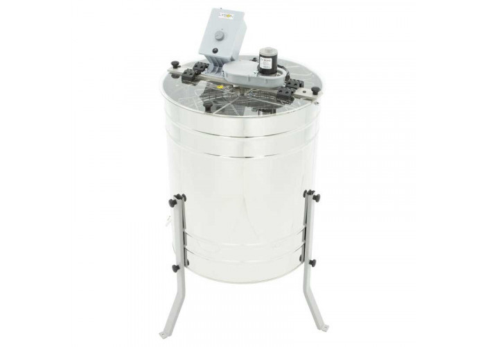 Utilajul este de tip casetat reversibil, dotat cu 4 casete din inox care se pliaza tangent la bazinul centrifugii. Pentru extragerea mierii de pe a doua fata a ramelor, casetele se vor actiona manual de catre operator, care le roteste in interiorul centrifugii.