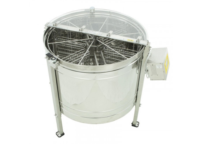 Utilajul este de tip casetat reversibil, dotat cu 6 casete din inox care se pliaza, iar directia de rotire poate fi schimbata. In casete intra 6 rame intregi Dadant-Blat 1/1 sau 12 rame 1/2.