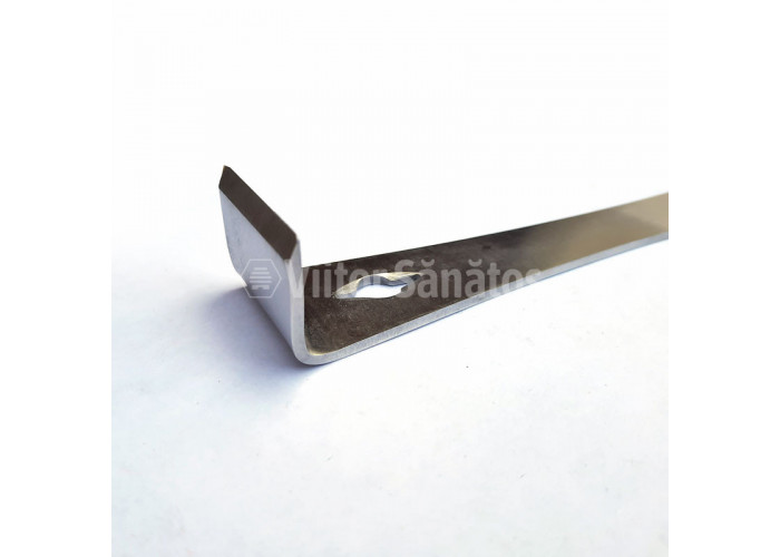 In interiorul metalului este o scobitura (pinten) ingusta la capete care se foloseste pentru extragerea cuielor din rame si corpuri de stupi.